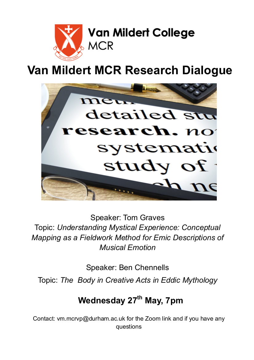 SCR members are invited to attend Van Mildert MCR’s research dialogue, which will be held on Wednesday 27 May, at 7pm.